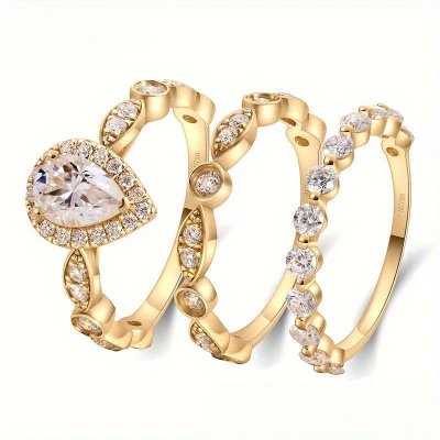 18Kゴールドプレートリングセット、Dカラー、ユニセックスジュエリー、ホリデーウェディング、ラブ、ボーイフレンド、クラスメイト